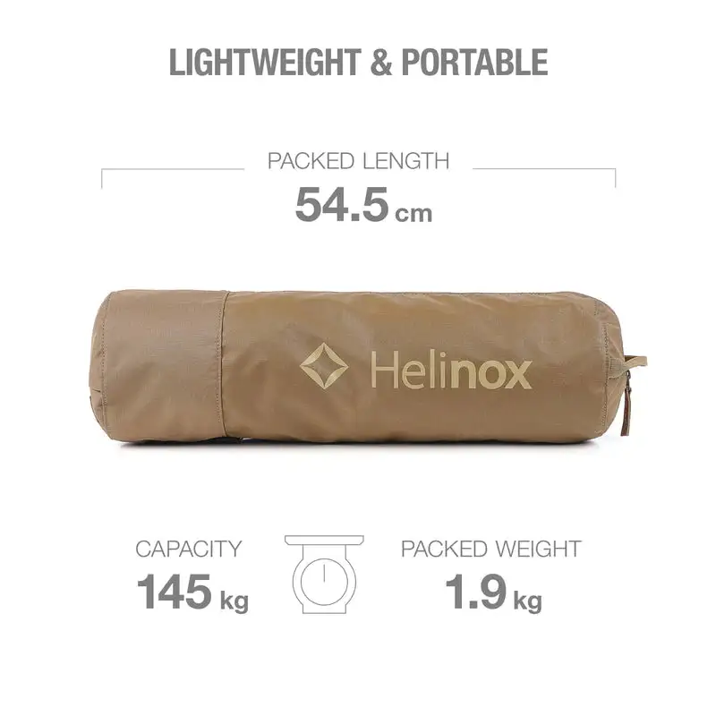 The frame is constructed with lightweight yet sturdy TH72M alloy by DAC, with high-strength nylon hubs and a weight rating of 145kg. Weighing just 1.9kg and packing down to less than 55cm in length, the luxurious Helinox Savanna Chair is sure to make all your mates jealous at the campsite.Â
