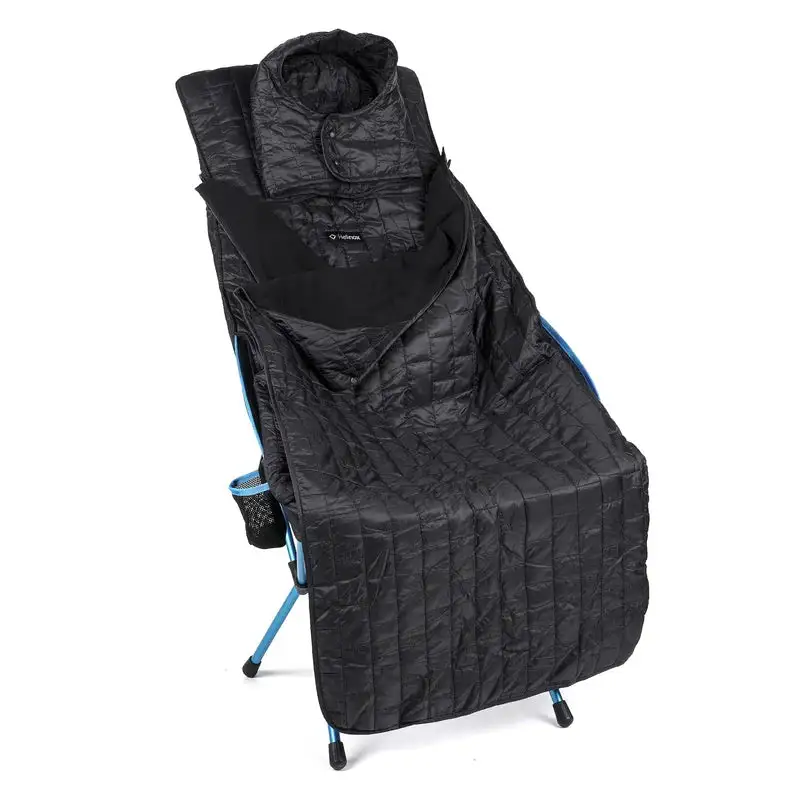 Sit comfortably and wrap yourself in warmth. The Helinox Toasty combines a full-length seat warmer with wraparound blanket wings and an integrated, detachable hood for comfort on cold-weather camping trips and outdoor adventures.
