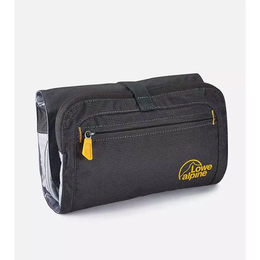 Simple roll-up wash bag with pockets and smash-proof mirror.