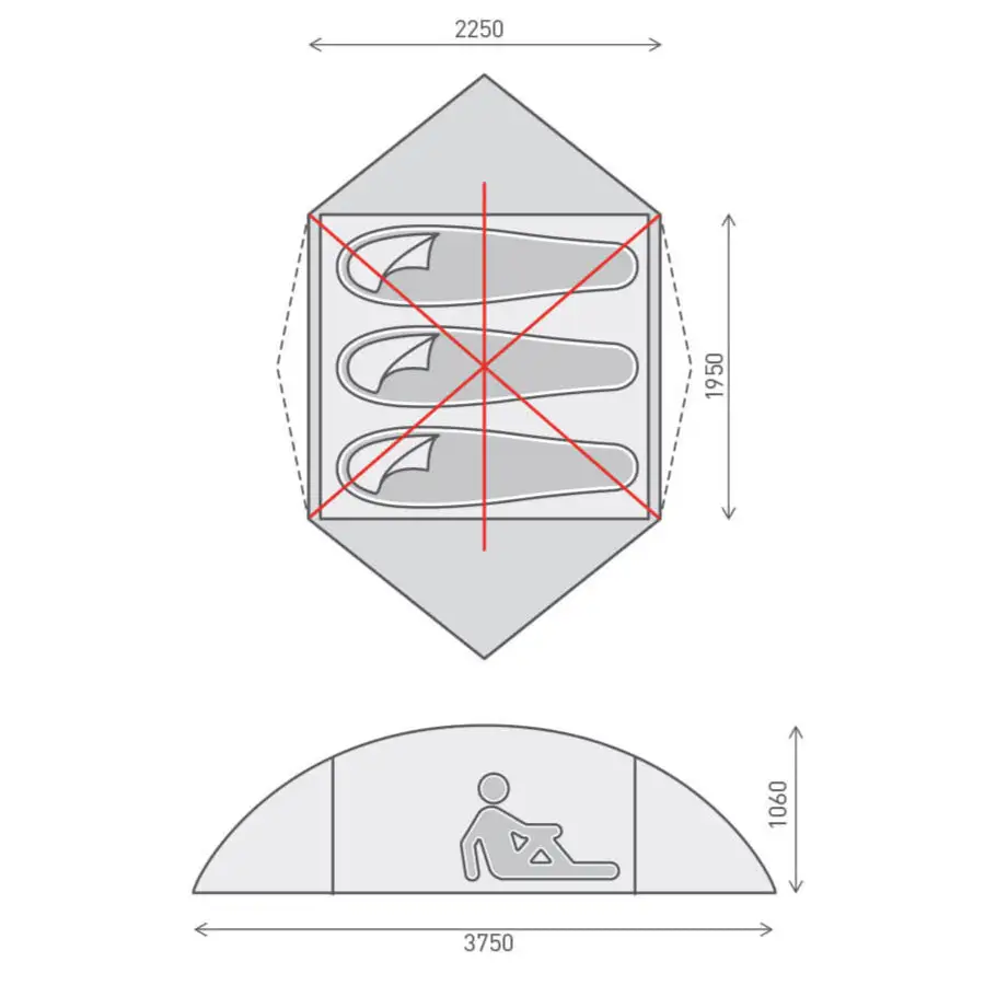 Perfect for three mates or a tribe of kids, the Goondie 3 has all the great features of its smaller siblings but with more space. The Mesh inner is great for warmer environments or those who love air flow, while the generous headroom allows comfortable card games. The 15 D nylon skirt prevents low drafts blowing directly into your face, and adds privacy for those clear nights when you forgo the fly for the view of the stars. The solid square floor plan and high headroom give plenty of sprawl space for all, while two large vestibules are great for sheltered cooking or stowing gear.