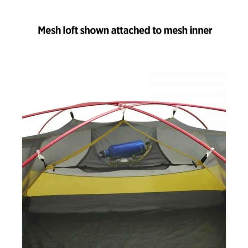 The Tent Mesh Loft fits the Goondie 1, 2 and 3 Nylon and Mesh Inner’s and the 2midable and 4midable Mesh inner’s. Hanging from the inner ceiling it provides handy extra interior storage. Simply attach through a toggle and loop system it’s a perfect lightweight upgrade.
