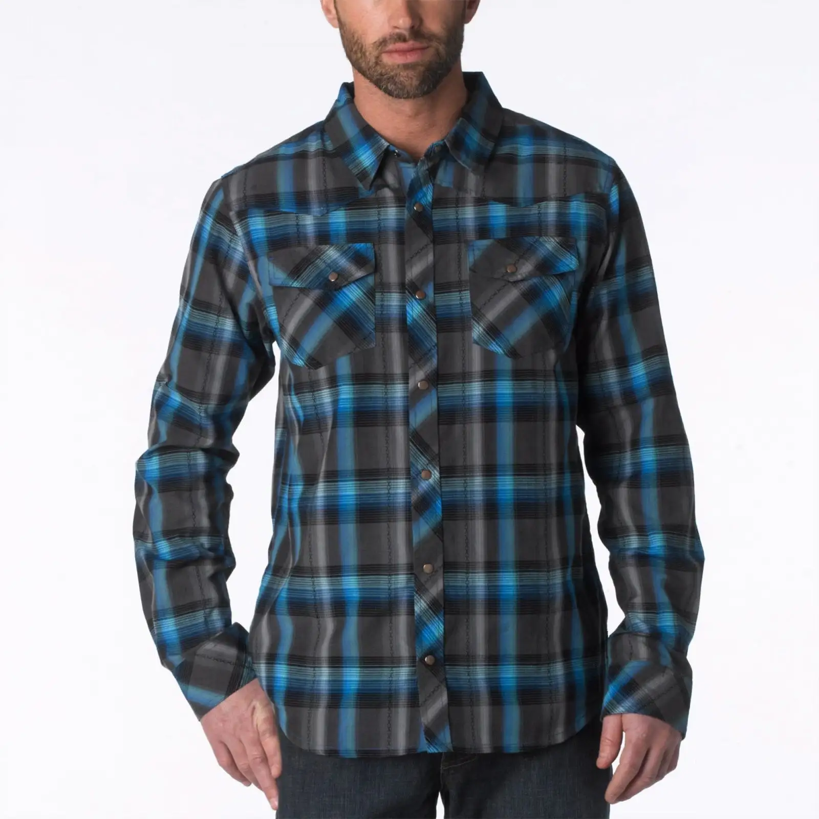 - Lightweight plaid with western inspired yoke details